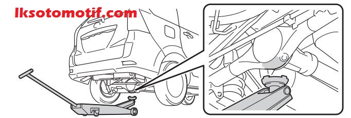 1. Angkat kendaraan menggunakan dongkrak lantai seperti yang ditunjukkan dalam gambar.